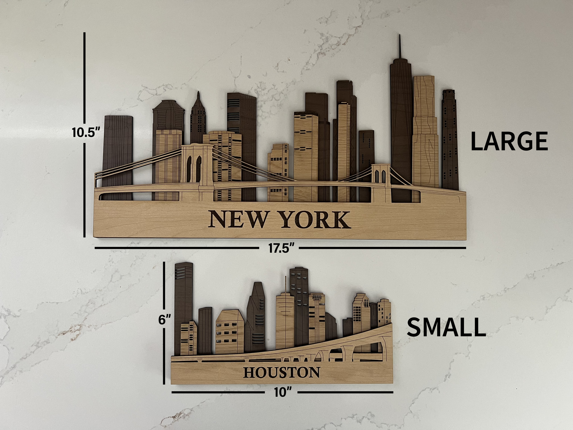 Each skyline is laser cut by us and hand-assembled! We make everything ourselves!